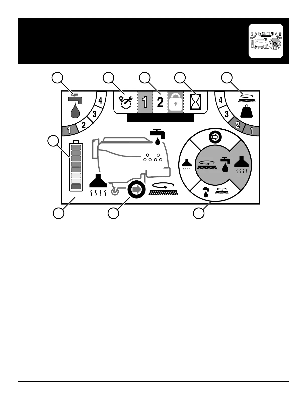 5. DOWN PRESSURE OUTPUT - Indicates the level of downpressure that is being applied to the fl oor surface