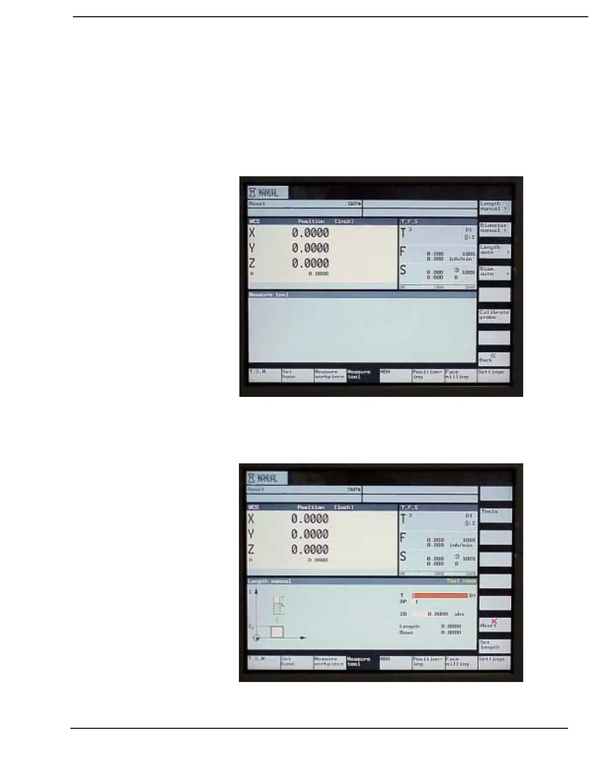 4) Select the Length Manual soft key when manually setting the tool