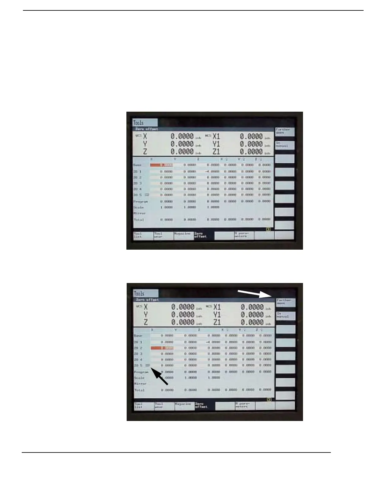 1) The ZERO OFFSET soft key is accessed from the main manual display. To