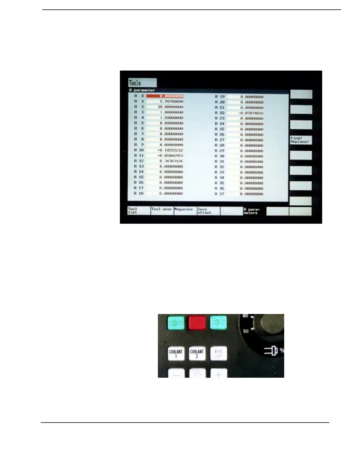 1) When the flood coolant is off, press the COOLANT 1 button to