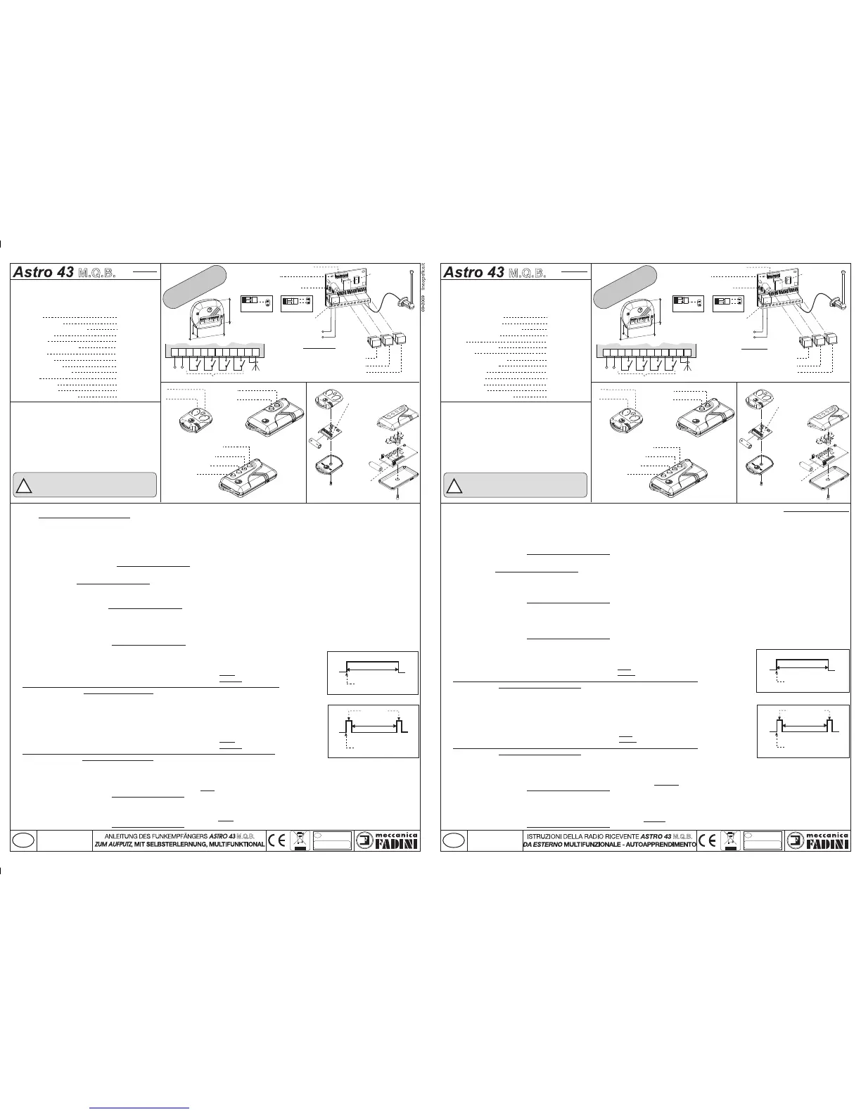 FUNZIONI DELLA RADIO RICEVENTE ASTRO 43 M.Q.B. DA ESTERNO: I Dip-Switch dei telecomandi servono solo come codifica del codice personale, non sono abilitati alle funzioni