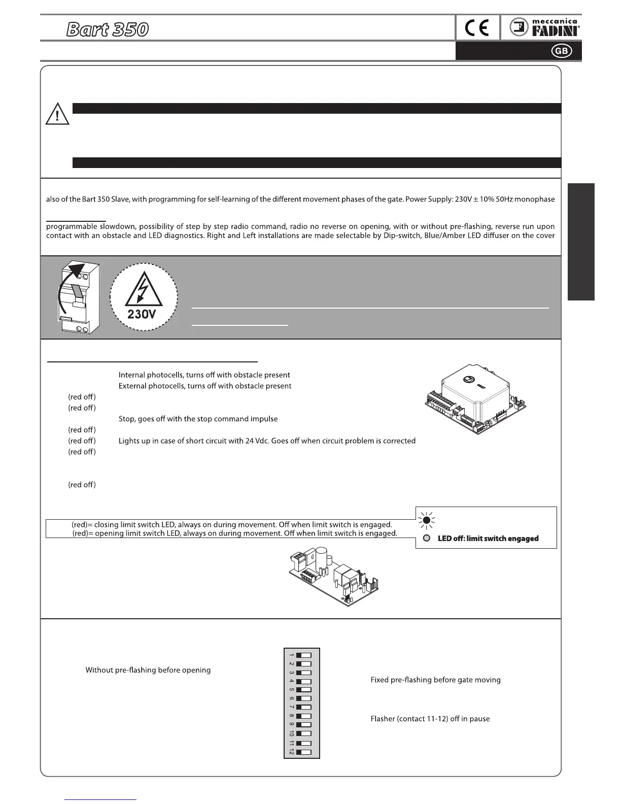DIP-SWITCHES: enable the performance of all of the possible functions of the Bart 350 Master and Slave gate opener