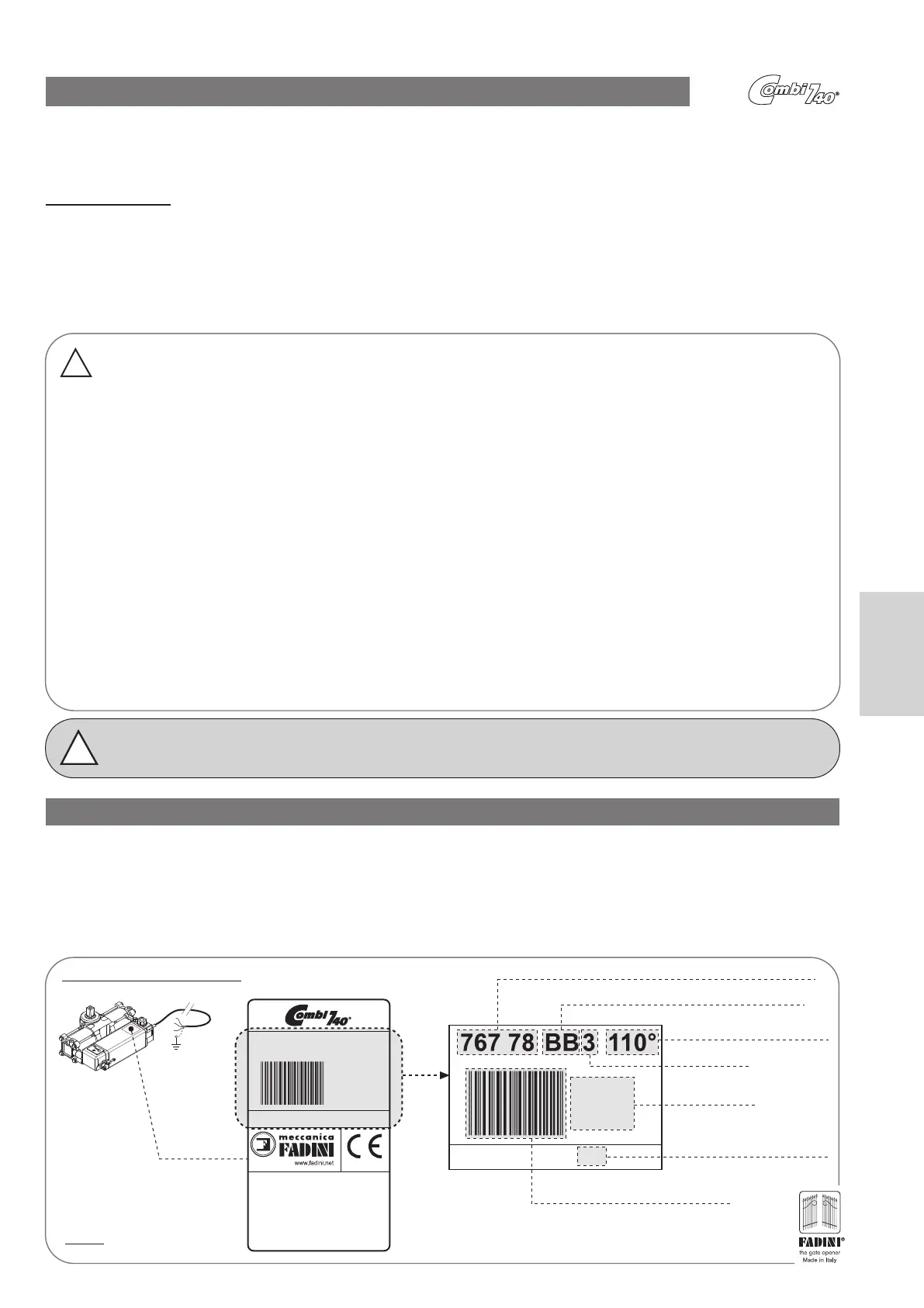 Meccanica Fadini, the manufacturer, is not responsible for installations failing to comply with correct installation and application