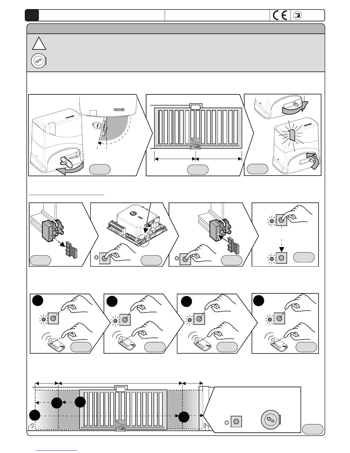 ioperator, then position the gate at about half of its run. Recover the lock closing the handle as a safety measure, when the unlocking