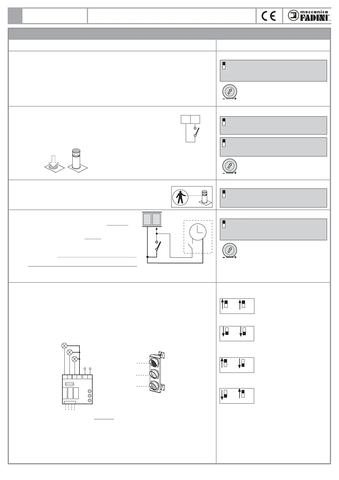 Halfautomatische cyclus: bij een stuurimpuls voor het openen, gaat de paal omhoog. Om de doorgang te