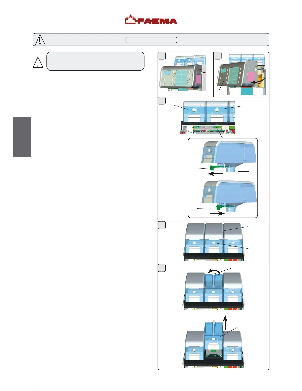 4) ouvrir la serrure de la trémie (T) et retirer le couvercle