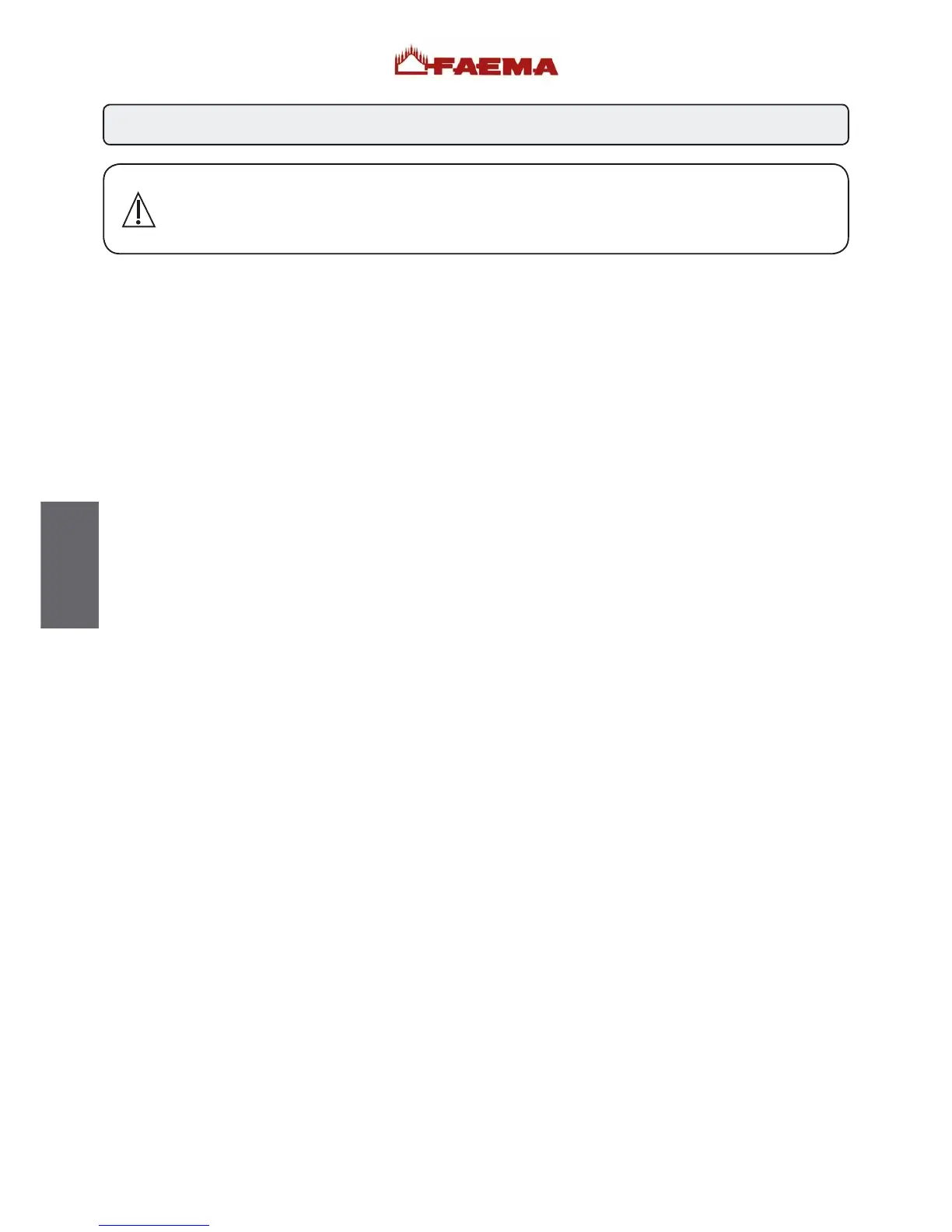 Die Maschine darf keinen Witterungseinflüssen (Regen, direkte Sonnenstrahlung, Frost) ausgesetzt werden.•