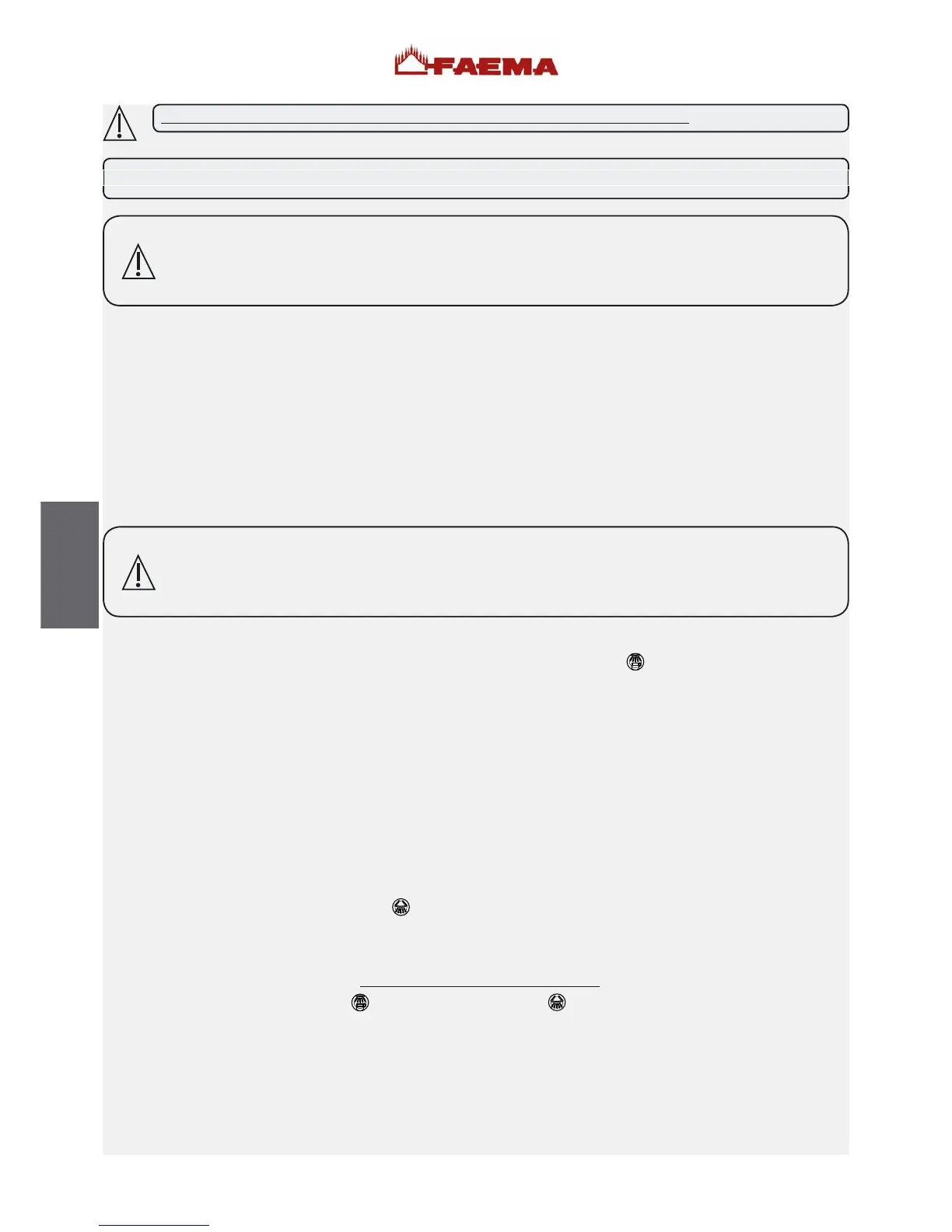 ZU BEACHTEN: NACH INSTALLATION, ANSCHLUSS UND EINSTELLUNG DER MASCHINE UND VOR