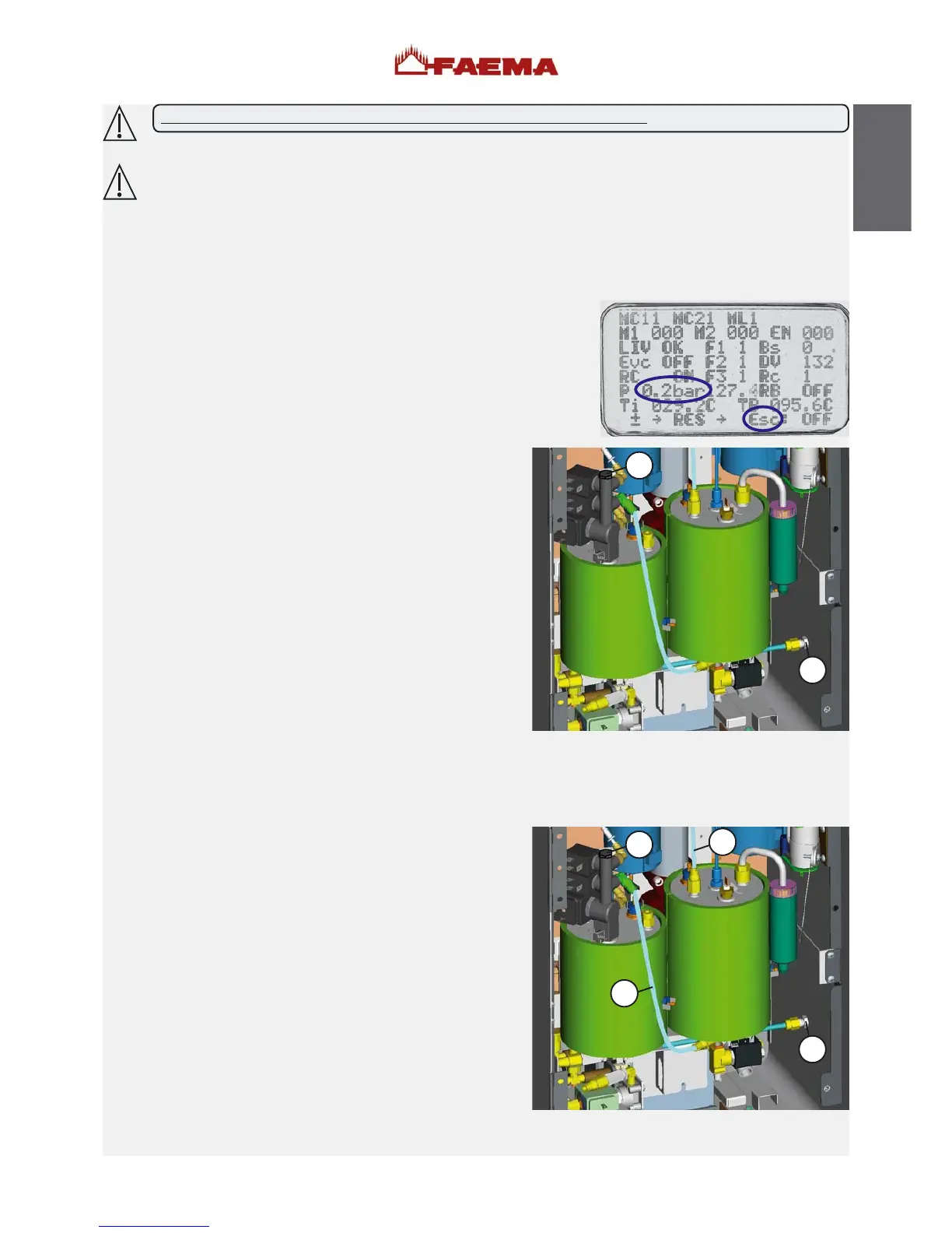 accedere ai comandi manuali e agire sull’elettrovalvola di scarico “Esc” fino