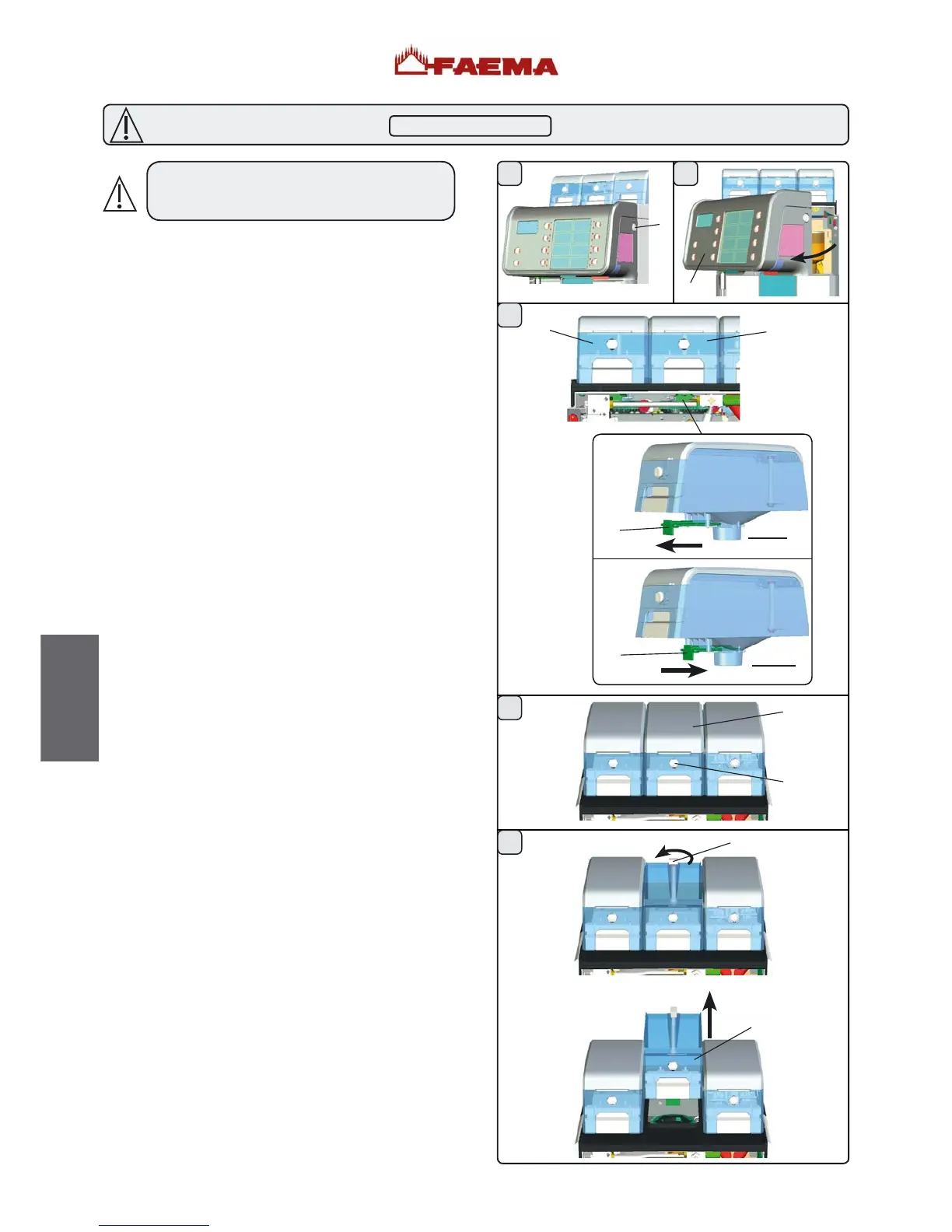 4) abrir la cerradura de la tolva (T) y quitar la tapadera (C);