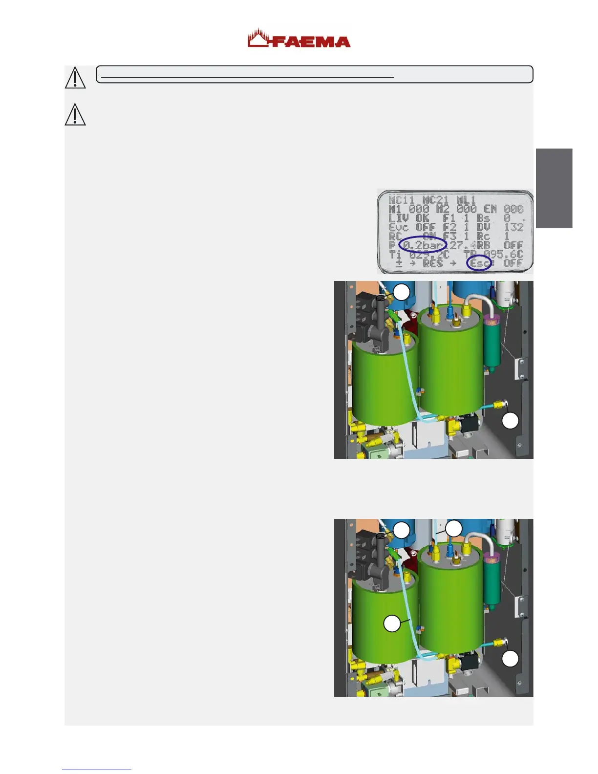 until the pressure on the display is 0.2 bar (so that the machine is filled with