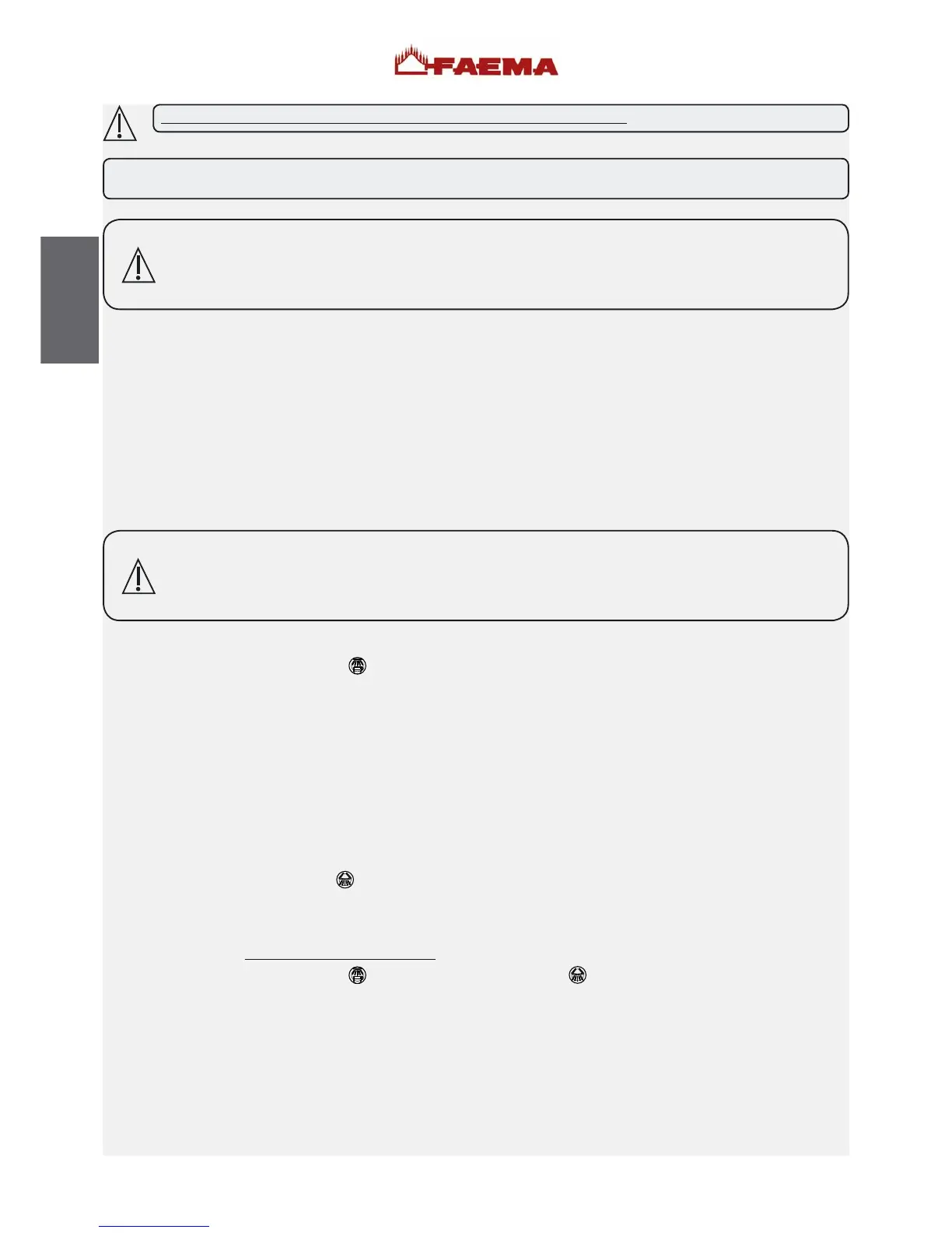 WARNING: ONCE THE MACHINE HAS BEEN INSTALLED AND IS READY FOR USE, BEFORE ALLOWING THE