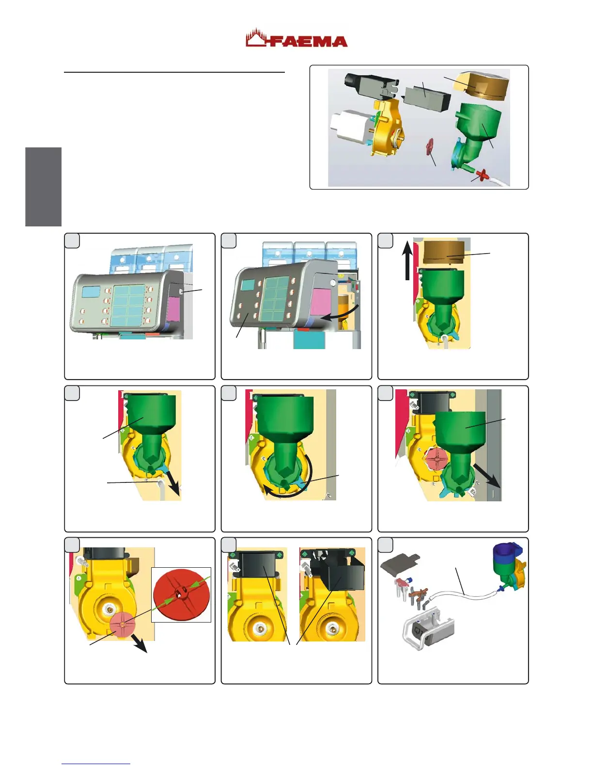 Detach the powder funnel (1).