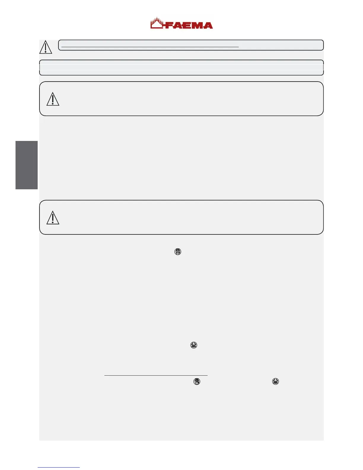 ATTENTION: LORSQUE LA MACHINE EST INSTALLEE ET PRETE A L’USAGE, AVANT DE CONFIER CELLE-CI