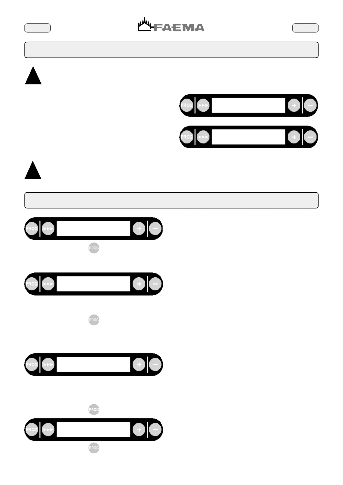and maintaining the PROG (35) key pressed down until the machine issues an audio signal (repeated every 10 seconds) and the
