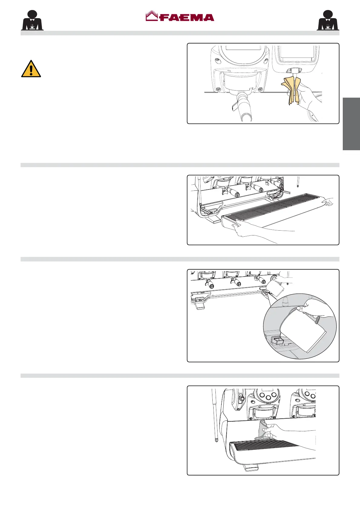 GRILLE AND DRIP BASIN - This operation must be carried out at the end of each working day