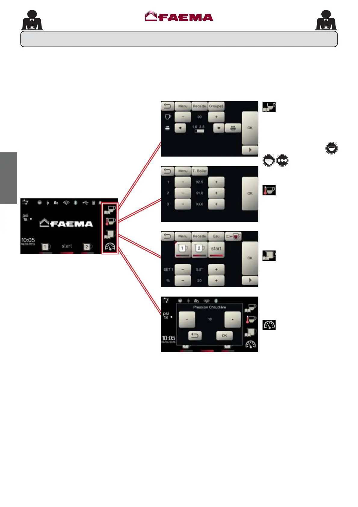 Il s'agit de menus d'accès rapide aux paramètres les plus utilisés dans la machine.