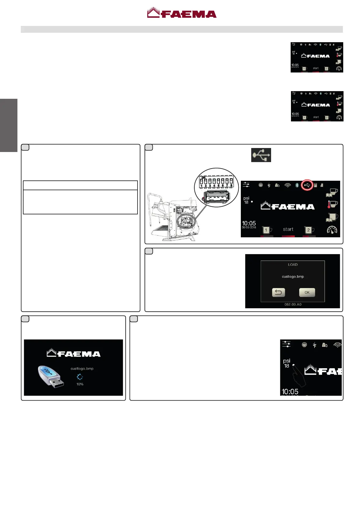 TheFaemastandardlogosareshownonallthemachinedisplays,afteraperiodofinactivityset