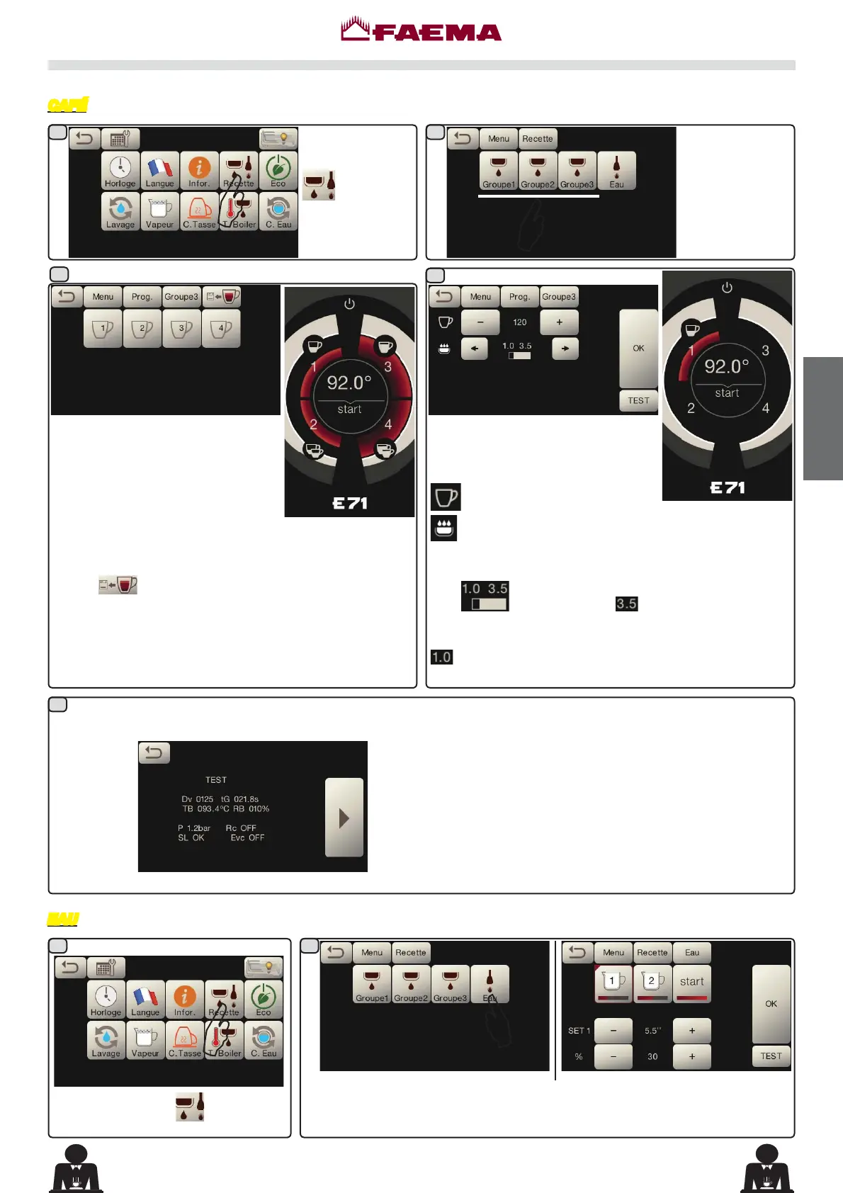 café (exemple Touche 1), l'écran