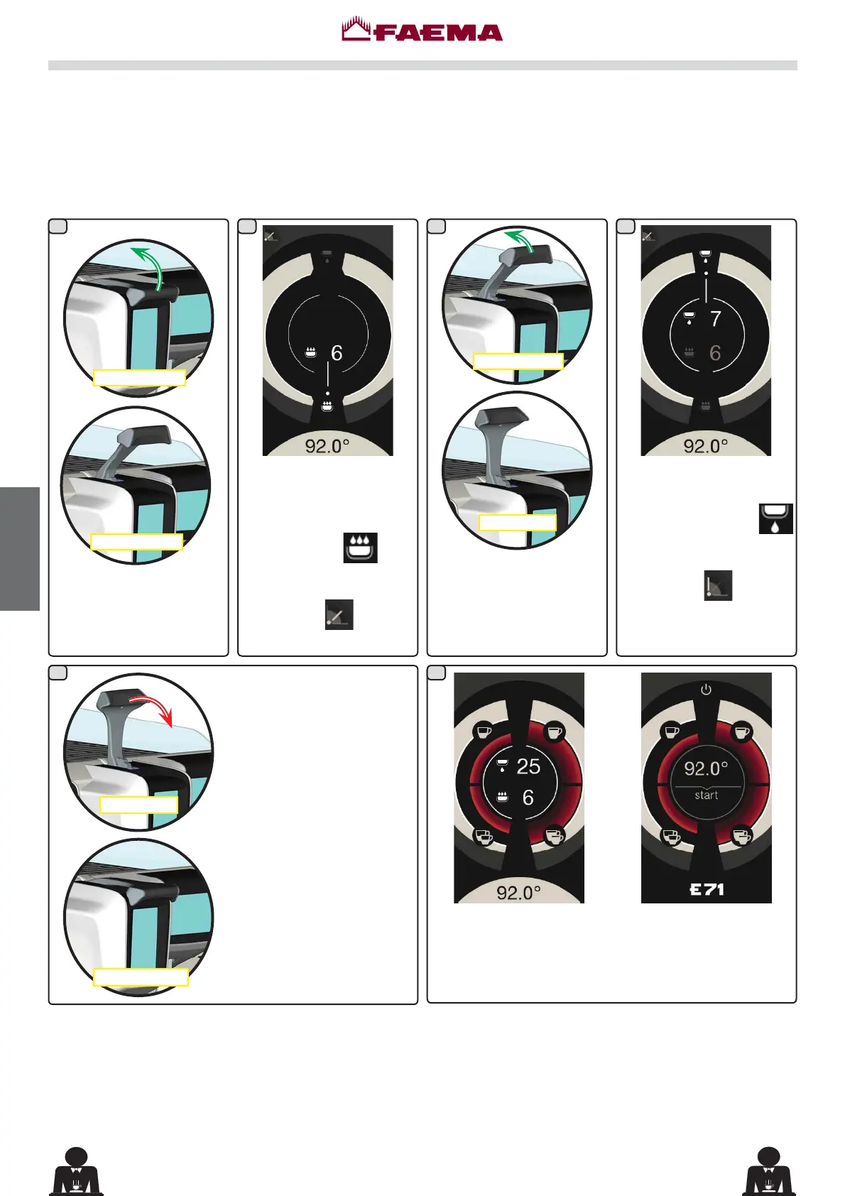 Mit dem Hebel für die Kaffeeabgabe lässt sich die Dauer der einzelnen Abgabephasen nach Ermessen des Benutzers
