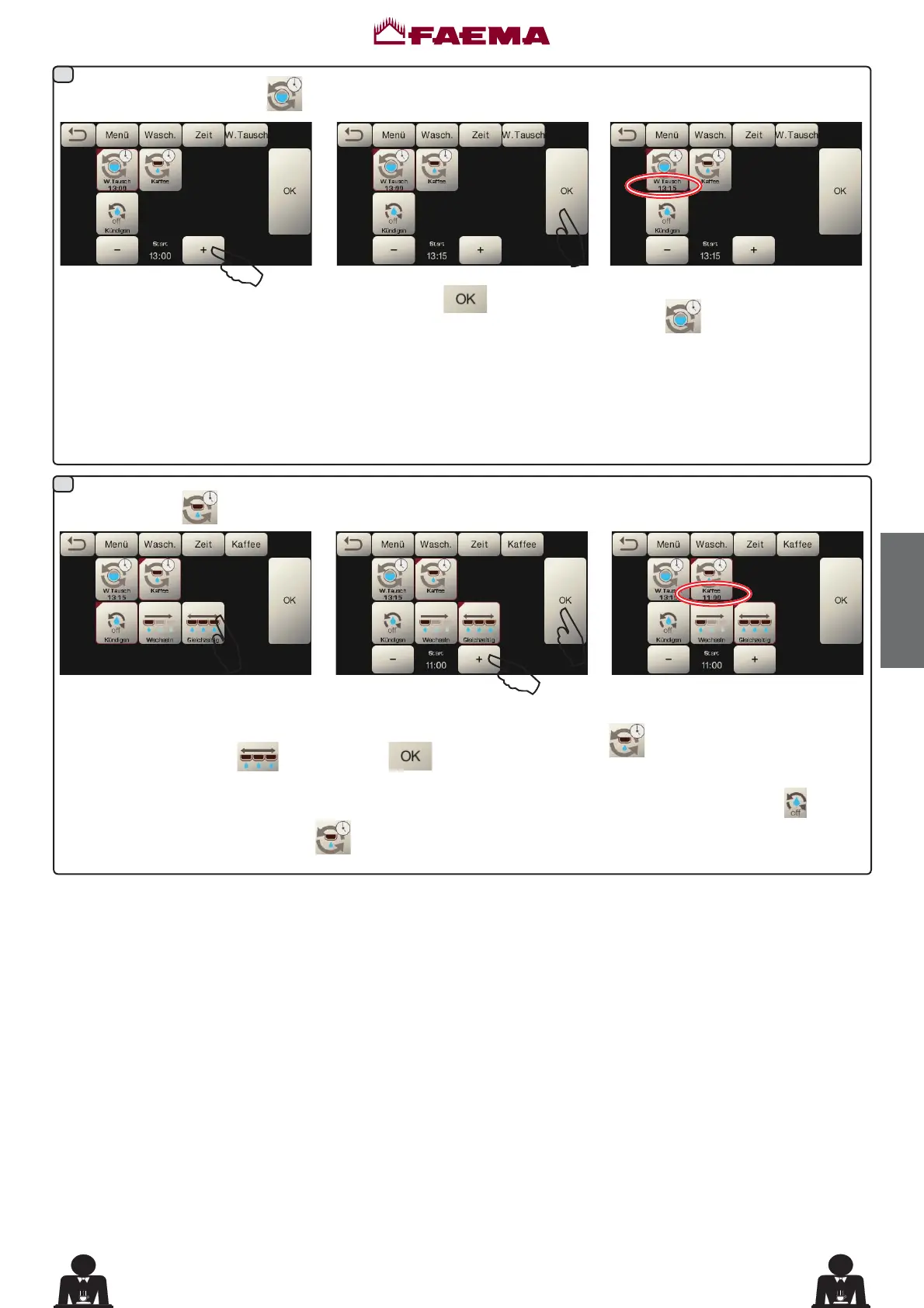 HINWEISE. Die Funktion „W.TAUSCH“ mit festgelegten Uhrzeiten wird durch den Fachtechniker eingestellt, der zudem