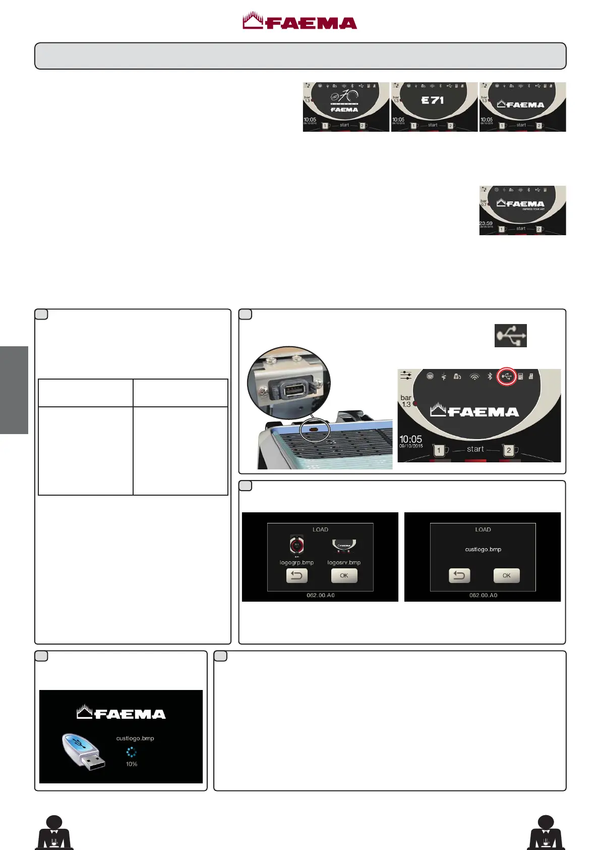 Inaktivität die Standardlogos von Faema angezeigt.