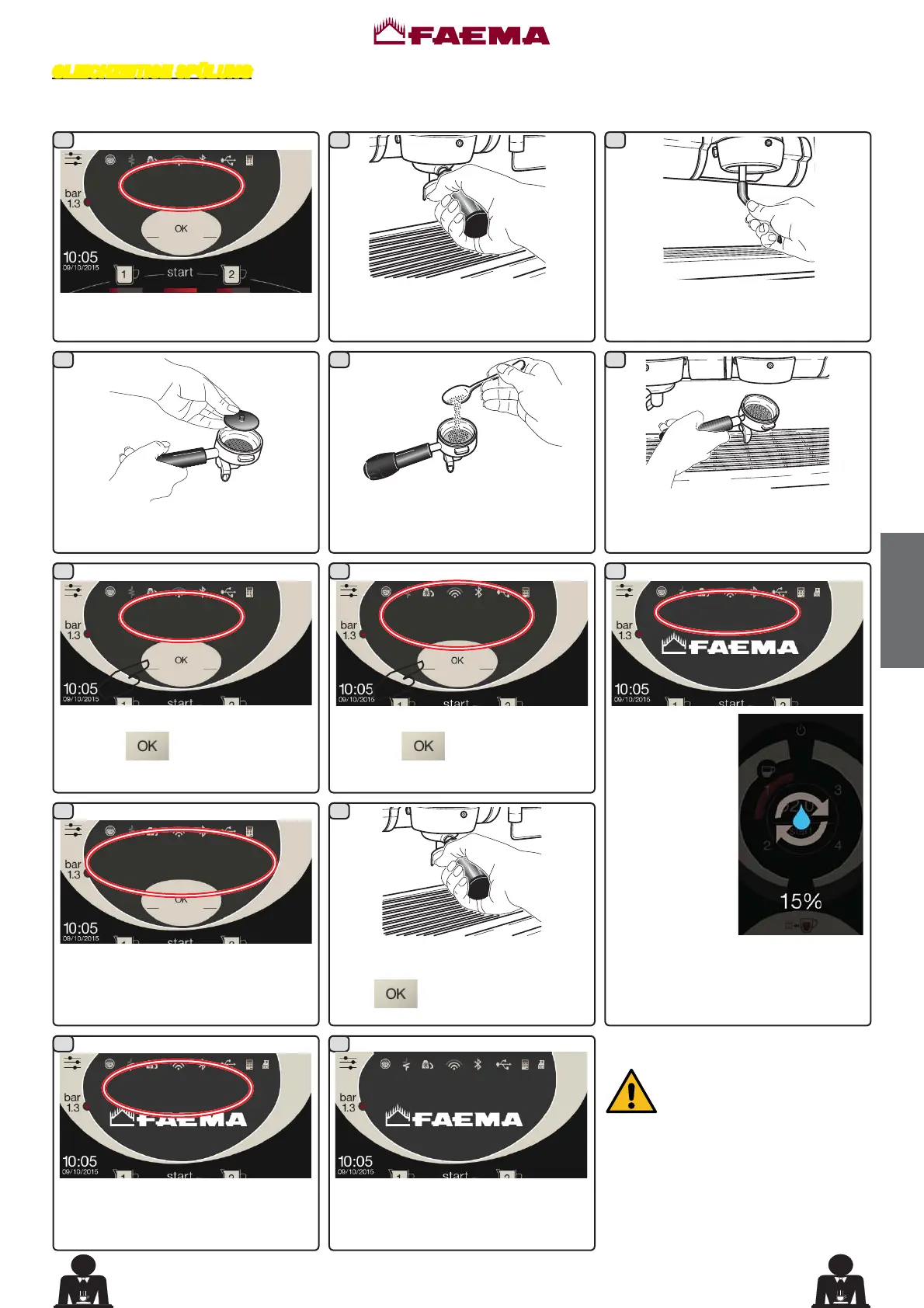 Die Spülung muss am Ende des Arbeitstages und immer, wenn es von der Maschine angezeigt wird, an allen