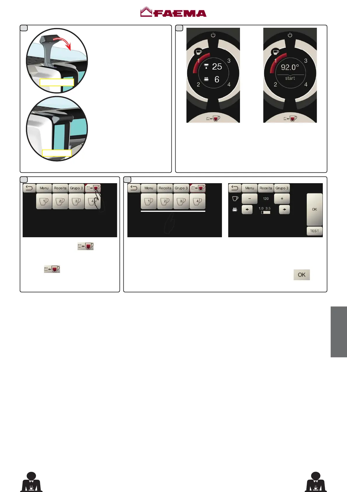 Carregando nos botões do café no visor dos serviços, são visualizadas as doses