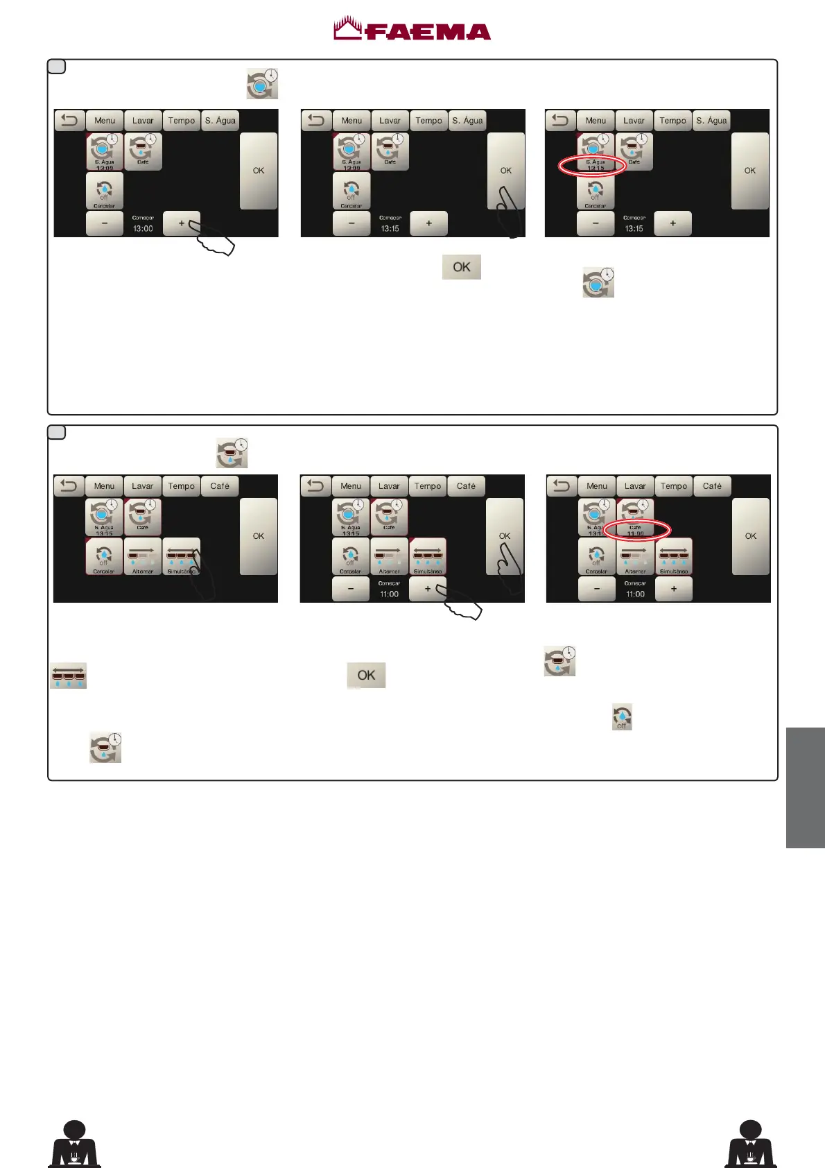 NOTAS. A função "MUDANÇA" com pedido por horário é programada pelo pessoal técnico, o qual tem também a