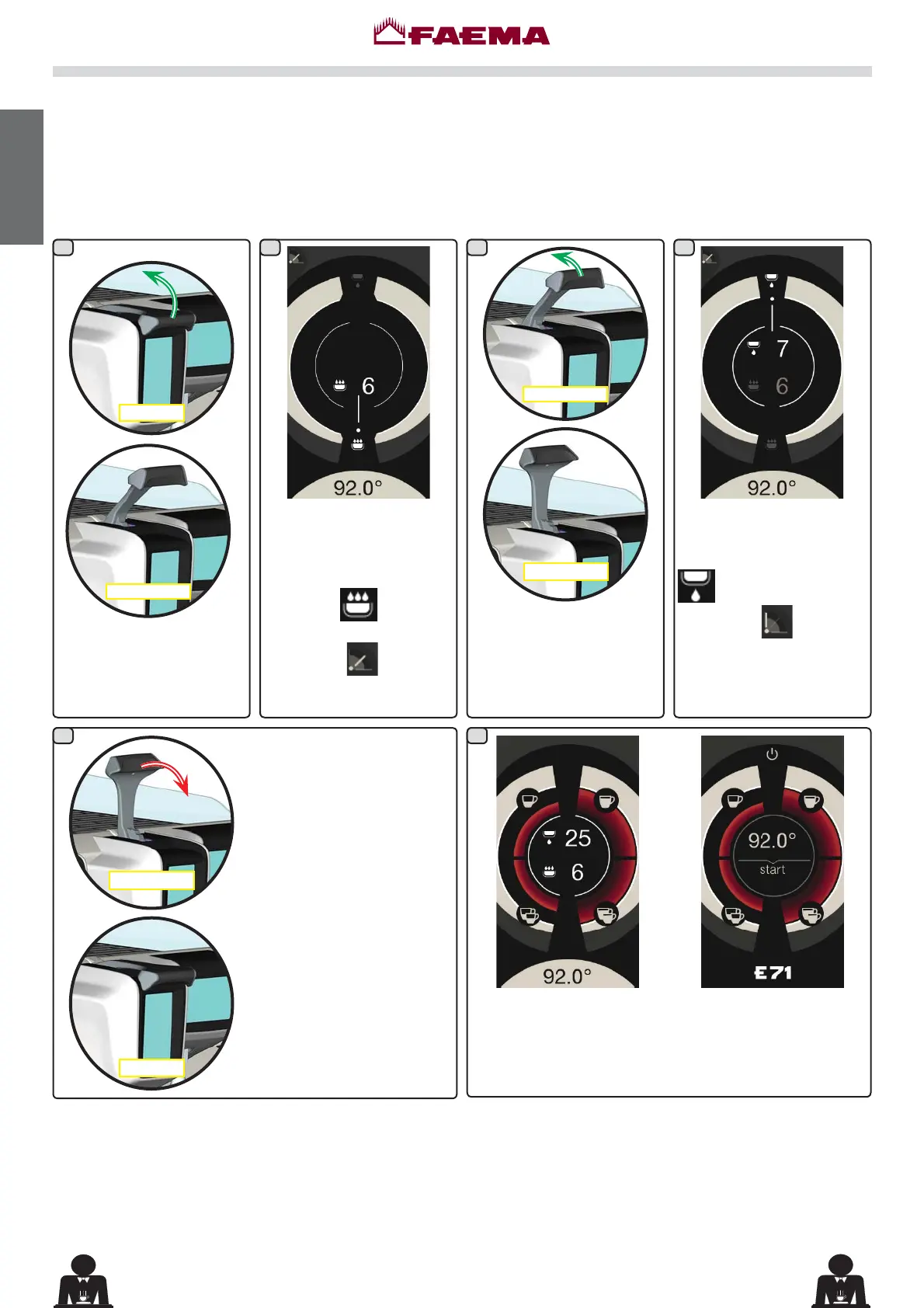 La leva di erogazione caffè permette di personalizzare, a discrezione dell'utente, la durata delle singole fasi dell'erogazione.