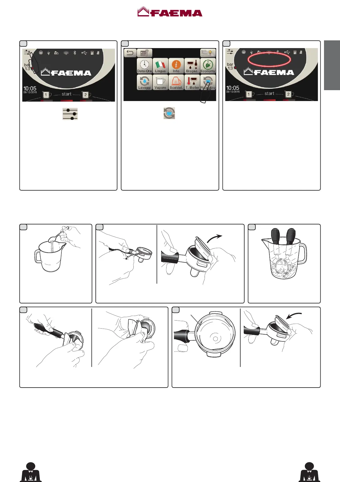 PULIZIA DEI PORTAFILTRI - ,QWHUYHQWRGDHIIHWWXDUVLDOWHUPLQHGHOODJLRUQDWDODYRUDWLYDVXWXWWLLSRUWD¿OWUL