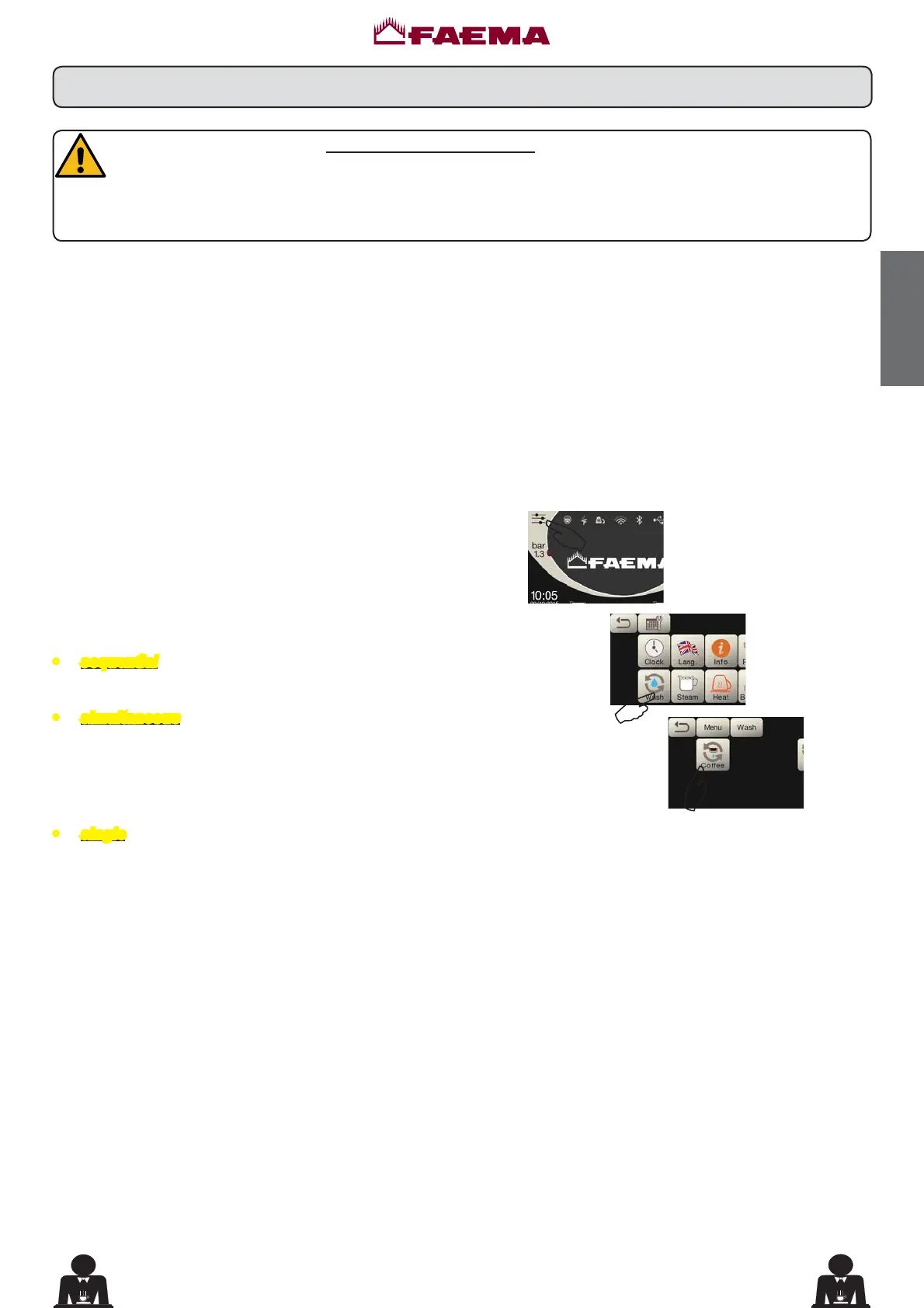 NOTE: the following operations must be carried out when the machine is on and pressurized.