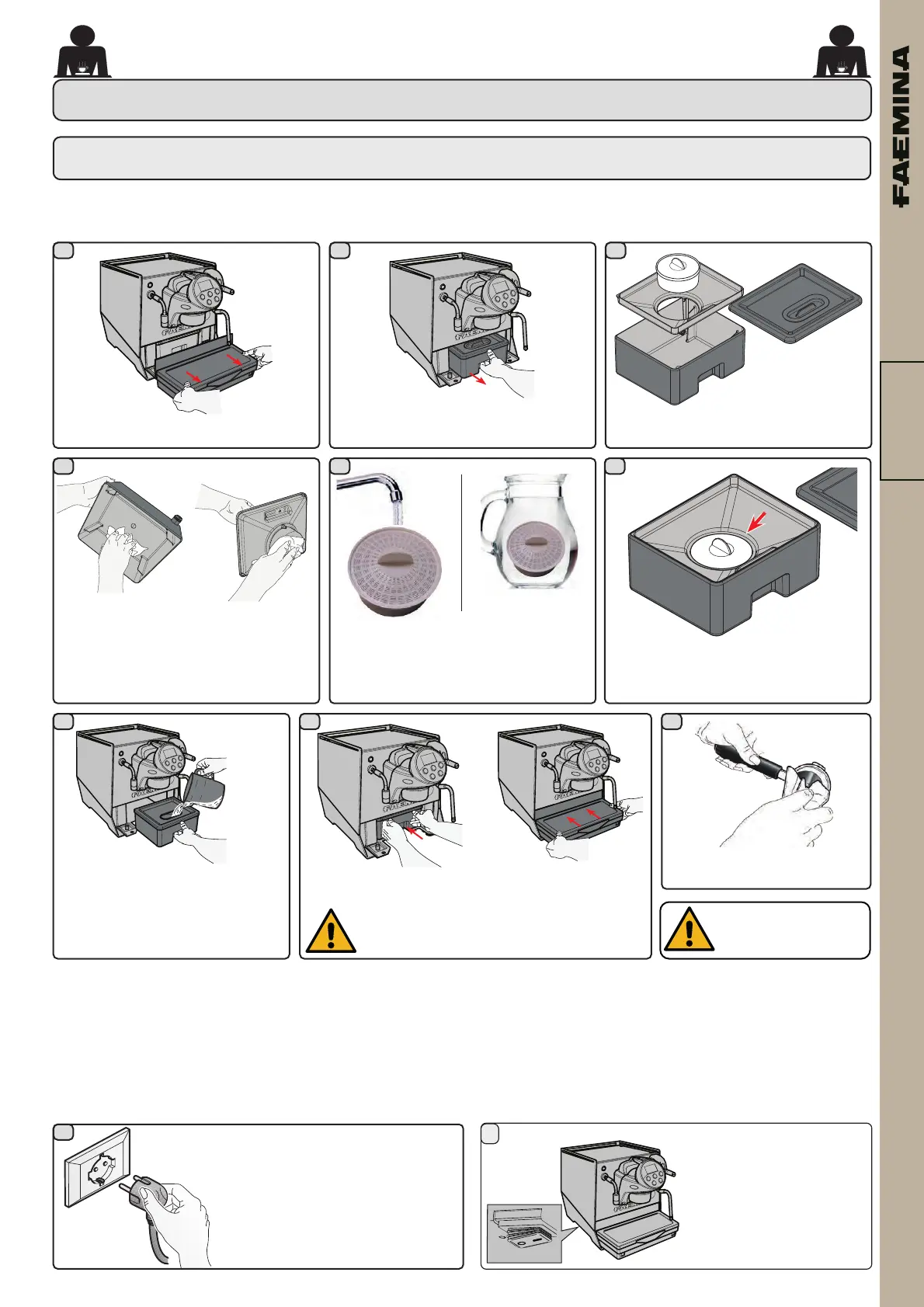Removethebasin. Extractthetankfromthemachine. Separatetheindividualpartsofthetank.