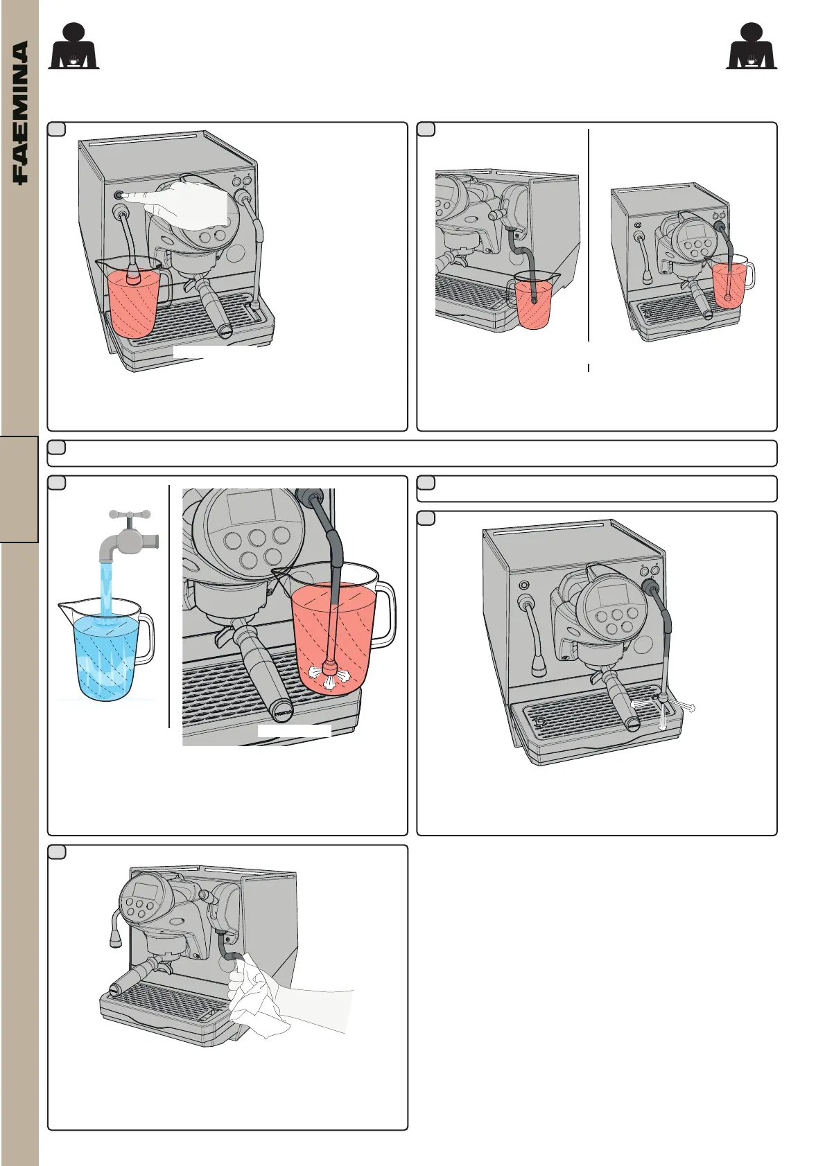 Orienter la buse vers le bac repose-tasses et distribuer de