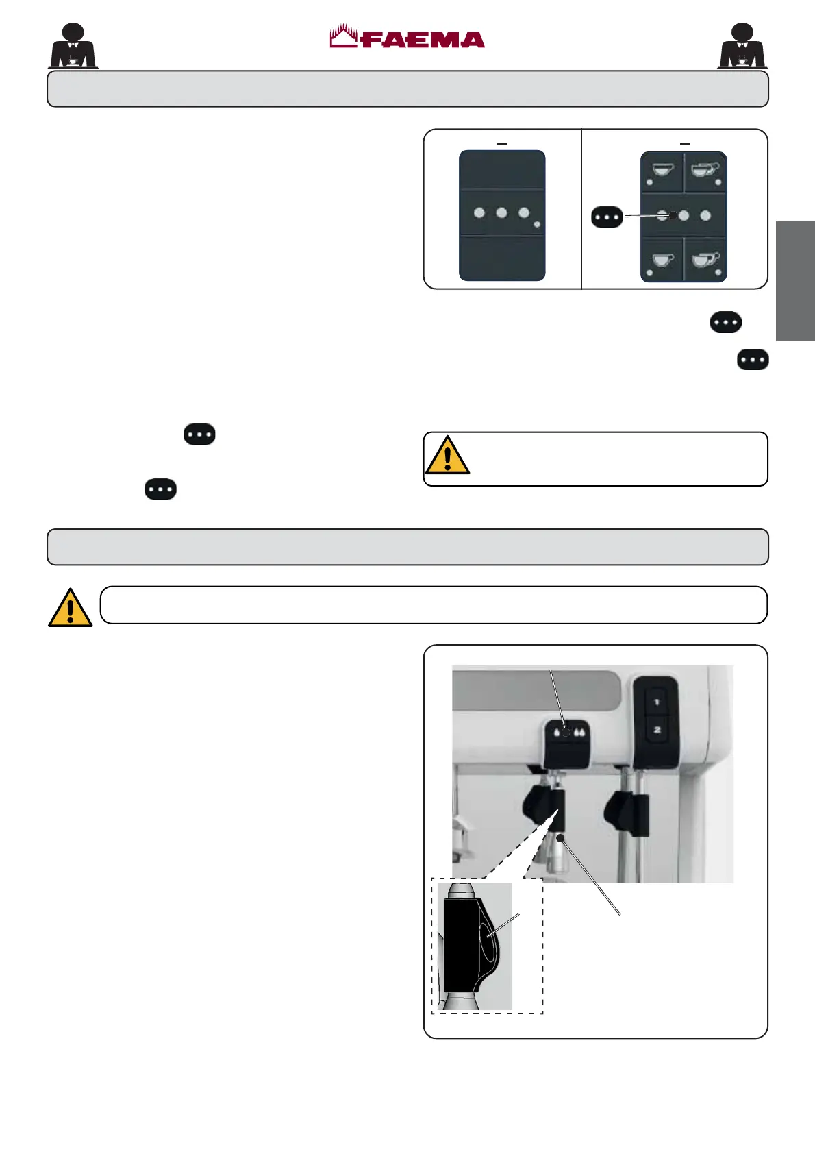 Scalding hazard! Use the appropriate insulating devices (A) to move the water and steam nozzles.