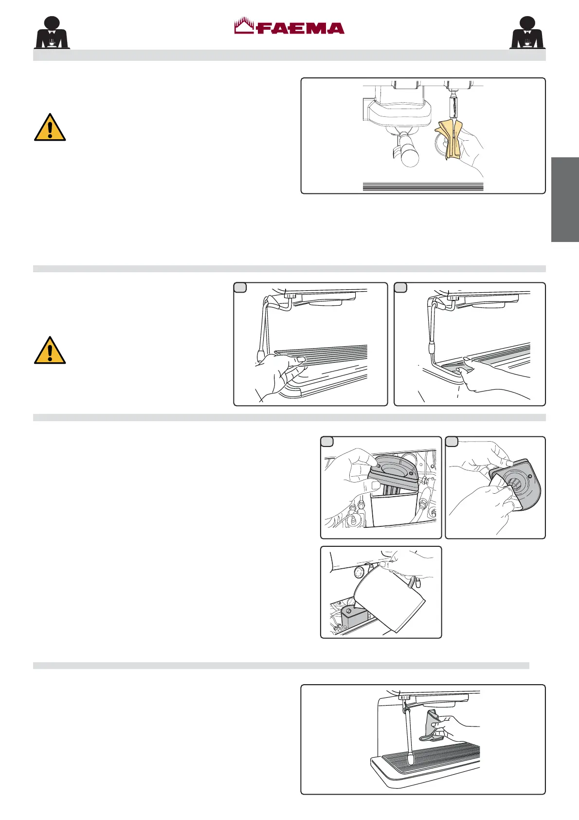 GRILLE AND DRIP BASIN - This operation must be carried out at the end of each working day