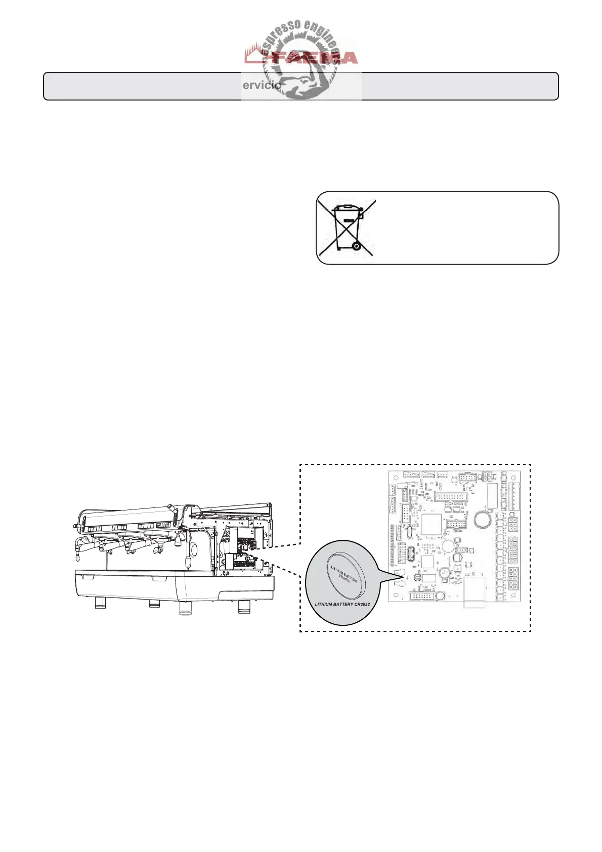 Este aparato contiene una batería botón no recargable del litio (química: litio dióxido de manganeso) integrada en el producto