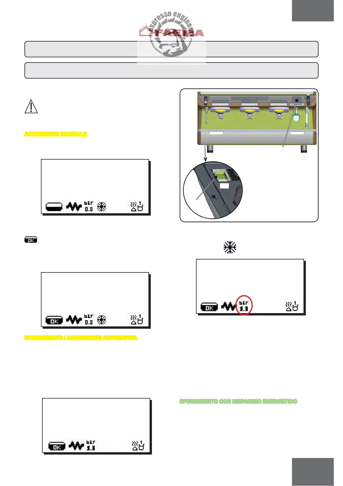 accende, si illuminano i led dei tasti e sul display (14) viene