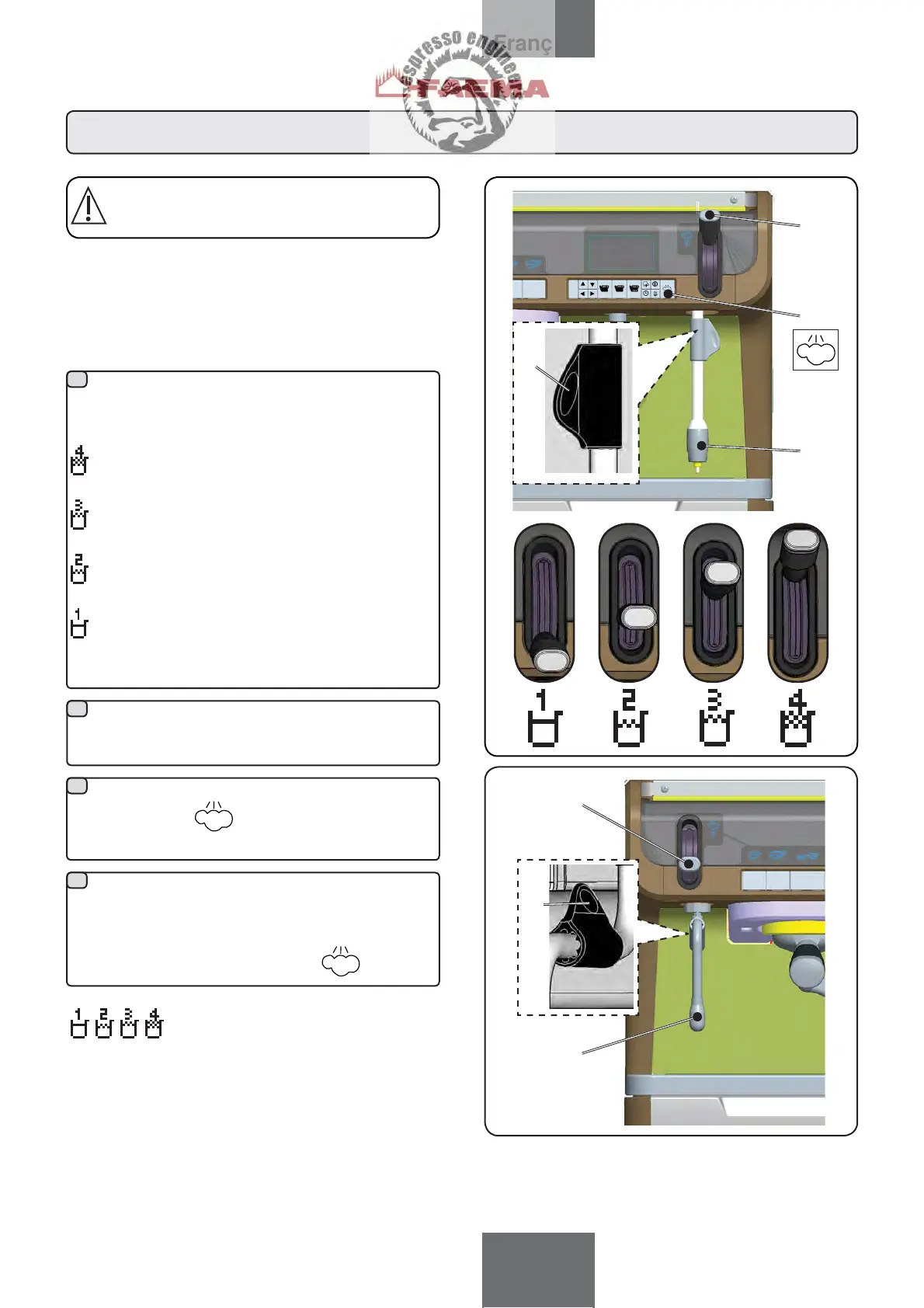 ramener ensuite le levier de commande de la vapeur vers le