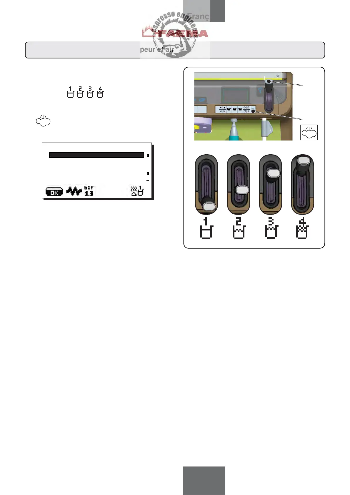 - T stop vap. (valeur “xxx°C” de température pour le lait chaud