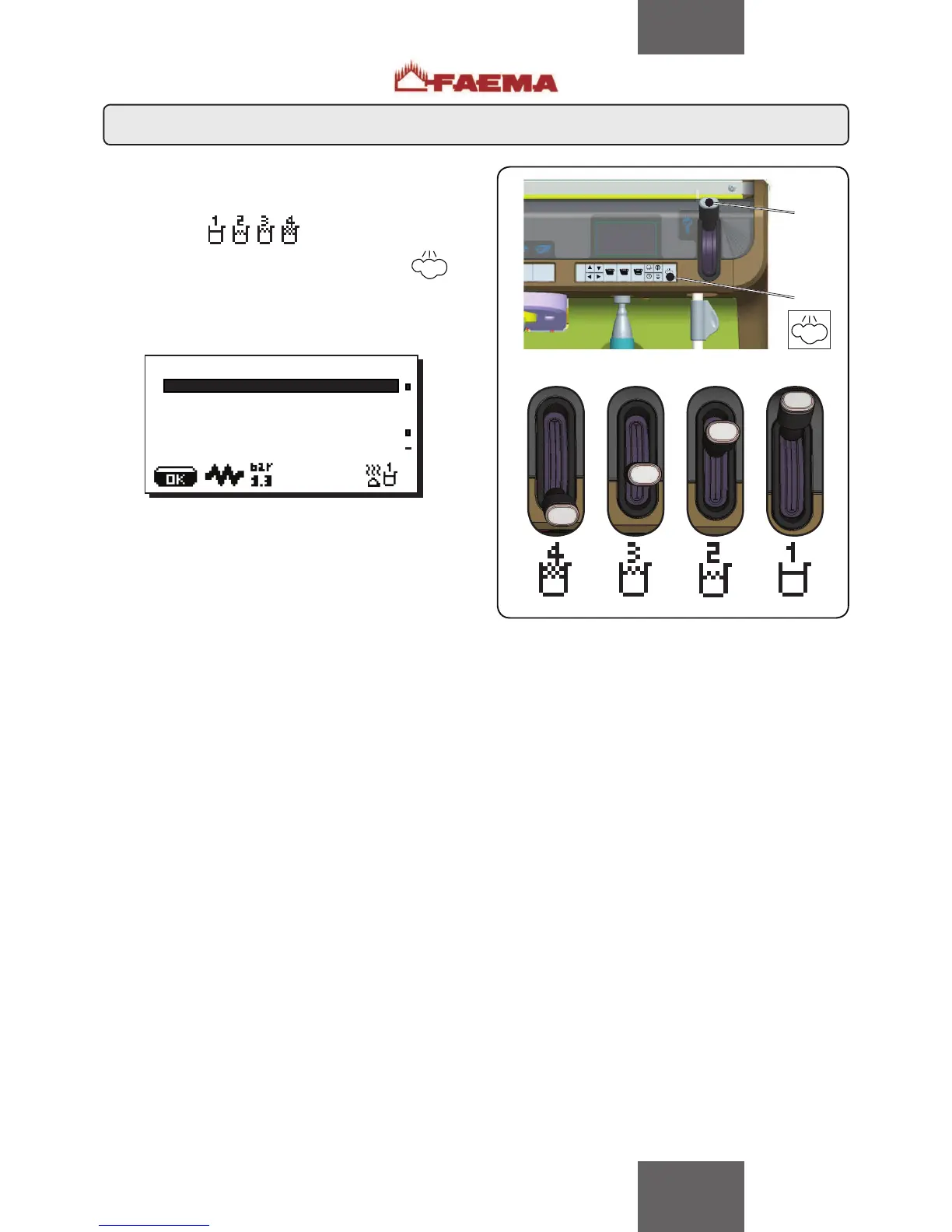Move the "steam selector lever" (11) to one of the 4 possible