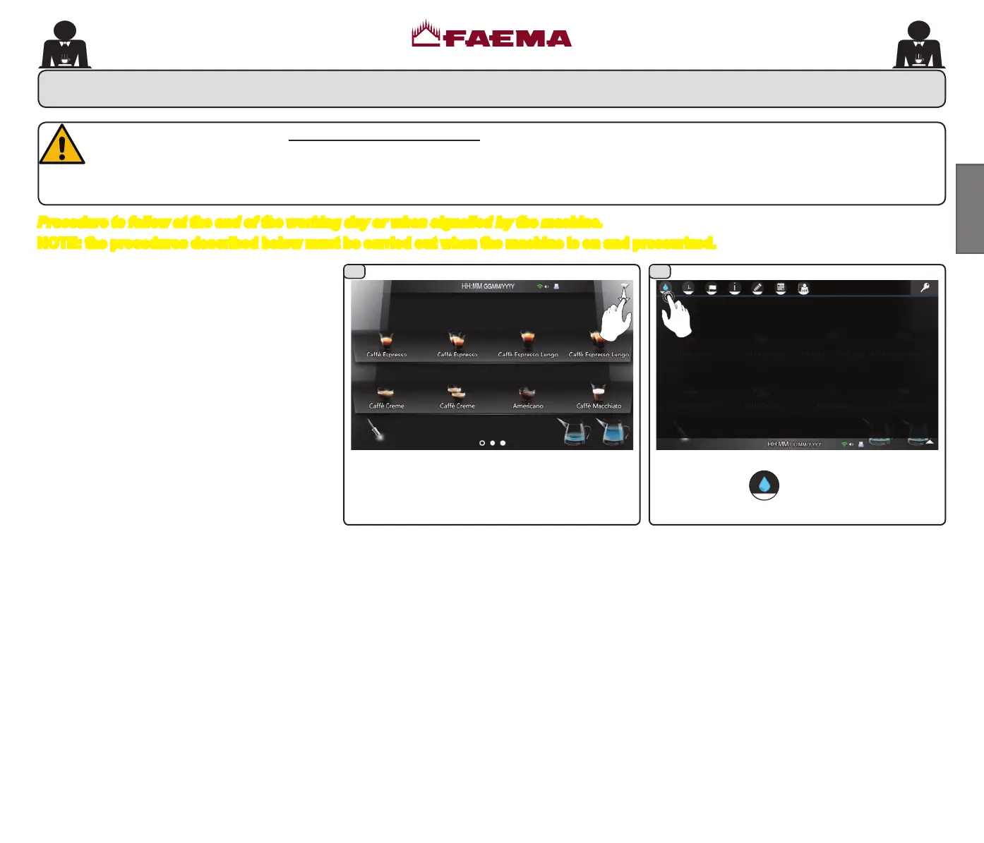 NOTE: the procedures described below must be carried out when the machine is on and pressurized.