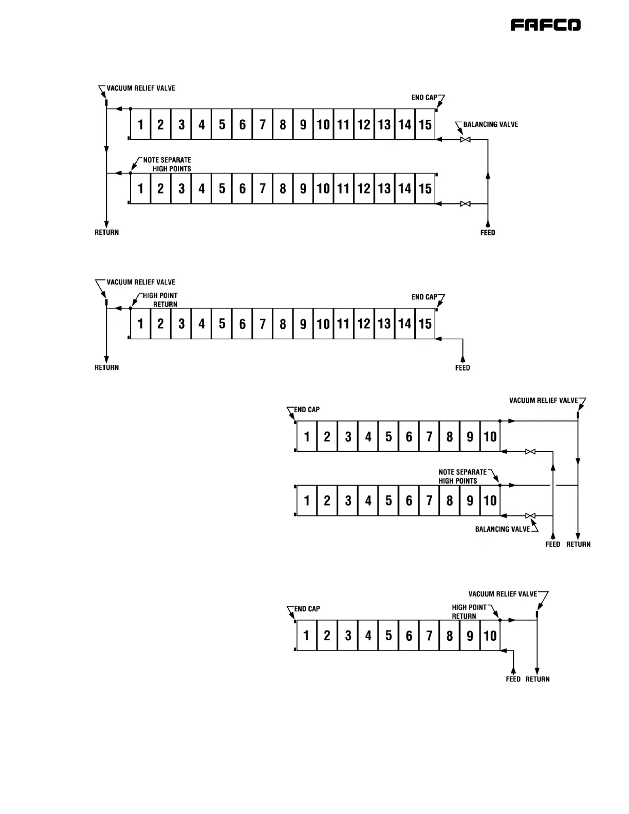 is a Single Bank Reverse Return which doesn’t need balancing valves. Similarly, C) is an example of a Same End Return Multi-Bank system where the