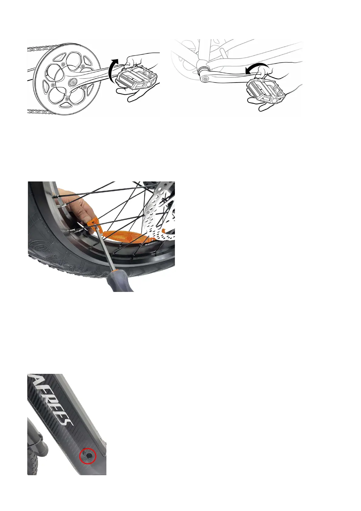 NOTE: The right pedal (pedal with "R" sticker label) is threaded so that it is tightened by turning