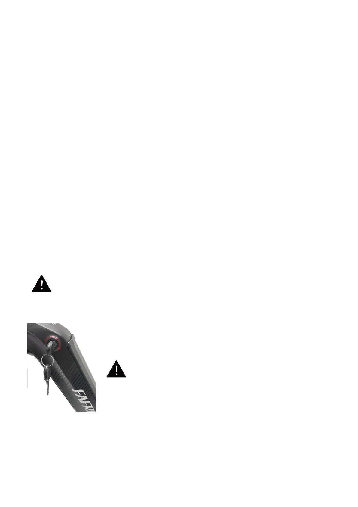 To remove the battery from the bike, insert the key and turn to the unlocked