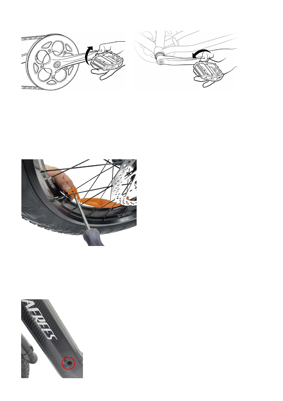 HINWEIS: Das rechte Pedal (Pedal mit „R“-Aufkleber) ist mit einem Gewinde versehen, sodass es