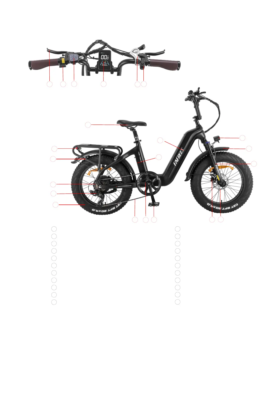 roue, 2 * fusibles de batterie, 2 * garnitures de frein, 1 * porte-clés)
