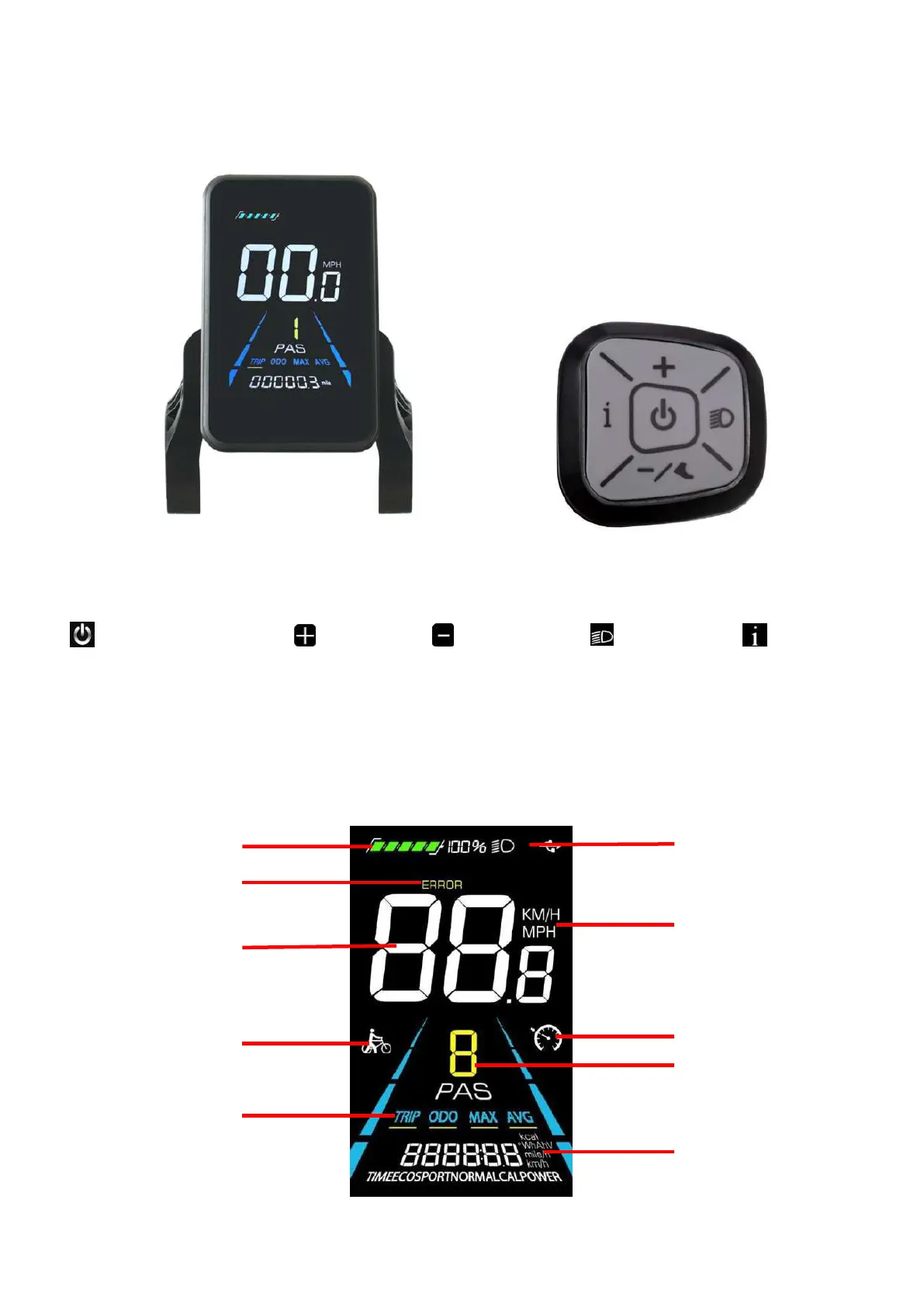 pulsante di accensione , pulsante più , pulsante meno , pulsante luce e pulsante di