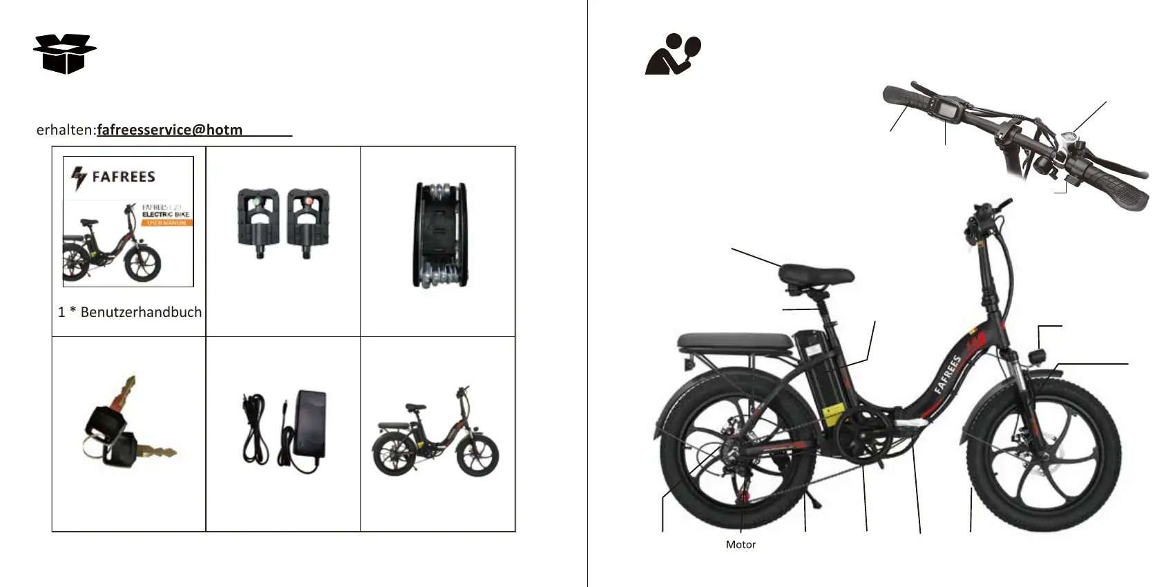 2 * Schlüssel 1 * Ladegerät 1 * Elektrofahrrad