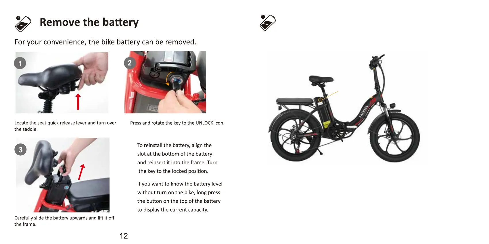 Ensure the baery is off, by rotang the key to align with the off icon.